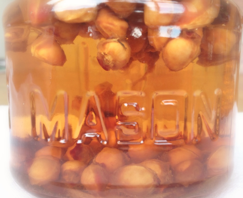 2.Put pits in a container and top with vinegar. Steep 2-3 weeks. Keep out of sunlight. The longer you steep the pits, the more flavor they will add. When done steeping, strain vinegar. Reserve vinegar and discard pits.
